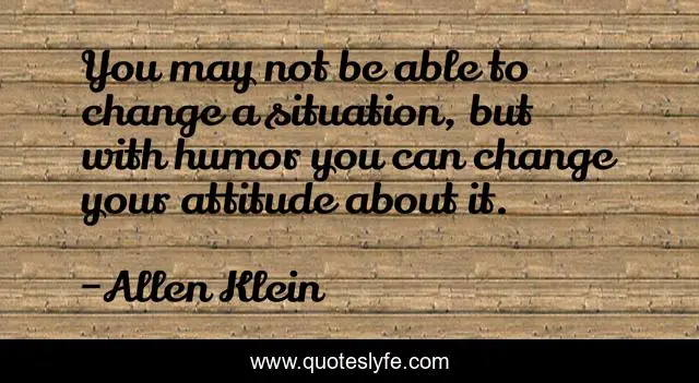 This page presents the quote "You may not be able to change a situation, but with humor you can change your attitude about it.". Author of this quote is Allen Klein. This quote is about humor, change,.