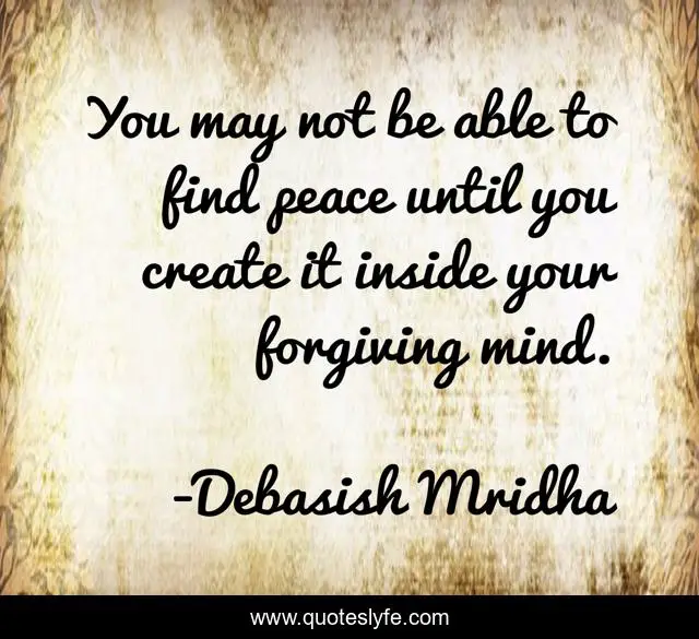This page presents the quote "You may not be able to find peace until you create it inside your forgiving mind.". Author of this quote is Debasish Mridha. This quote is about create-peace, forgiving-mind, philosophy, debasish-mridha, quotes, inspirational, enthusiasm, forgiving, forgiveness,.
