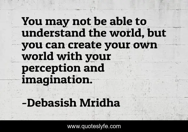 You may not be able to understand the world, but you can create your own world with your perception and imagination.