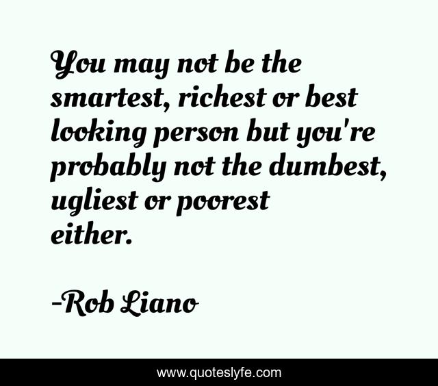This page presents the quote "You may not be the smartest, richest or best looking person but you're probably not the dumbest, ugliest or poorest either.". Author of this quote is Rob Liano. This quote is about encouragement, self-esteem,.