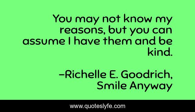 "Richelle E. Goodrich, Smile Anyway Quotes." Quoteslyfe.com, 2025. Mon. 08 Dec. 2025. <https://www.quoteslyfe.com/quote/You-may-not-know-my-reasons-but-136718>.