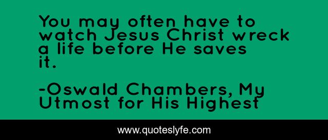 This page presents the quote "You may often have to watch Jesus Christ wreck a life before He saves it.". Author of this quote is Oswald Chambers, My Utmost for His Highest. .