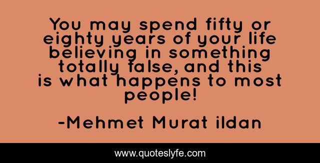 This page presents the quote "You may spend fifty or eighty years of your life believing in something totally false, and this is what happens to most people!". Author of this quote is Mehmet Murat ildan. .