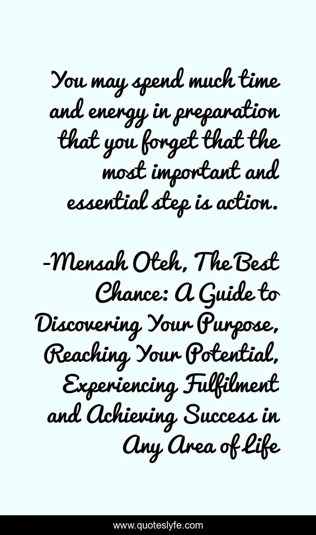 Check all other quotes by Mensah Oteh, The Best Chance: A Guide to Discovering Your Purpose, Reaching Your Potential, Experiencing Fulfilment and Achieving Success in Any Area of Life