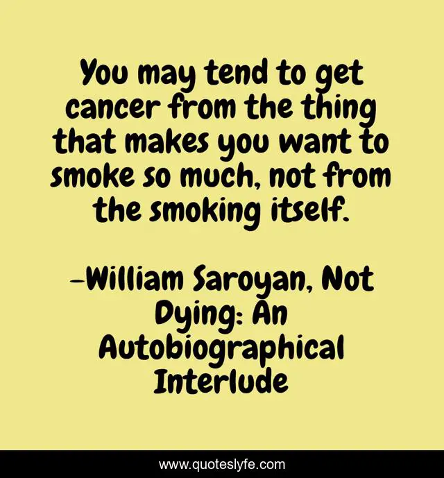 "William Saroyan, Not Dying: An Autobiographical Interlude Quotes." Quoteslyfe.com, 2025. Mon. 08 Dec. 2025. <https://www.quoteslyfe.com/quote/You-may-tend-to-get-cancer-from-8281>.