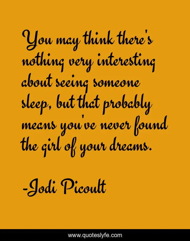 This page presents the quote "You may think there's nothing very interesting about seeing someone sleep, but that probably means you've never found the girl of your dreams.". Author of this quote is Jodi Picoult. This quote is about love, sleep, affection,.