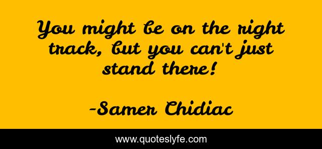 This page presents the quote "You might be on the right track, but you can't just stand there!". Author of this quote is Samer Chidiac. This quote is about motivation, lessons-learnt, goals-in-life,.