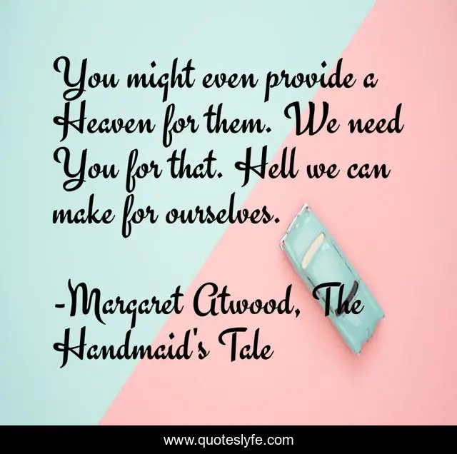 "Margaret Atwood, The Handmaid's Tale Quotes." Quoteslyfe.com, 2025. Mon. 08 Dec. 2025. <https://www.quoteslyfe.com/quote/You-might-even-provide-a-Heaven-for-11425>.