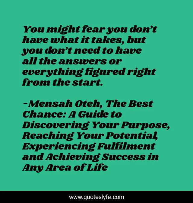 "Mensah Oteh, The Best Chance: A Guide to Discovering Your Purpose, Reaching Your Potential, Experiencing Fulfilment and Achieving Success in Any Area of Life Quotes." Quoteslyfe.com, 2025. Fri. 05 Dec. 2025. <https://www.quoteslyfe.com/quote/You-might-fear-you-don-t-have-15800>.