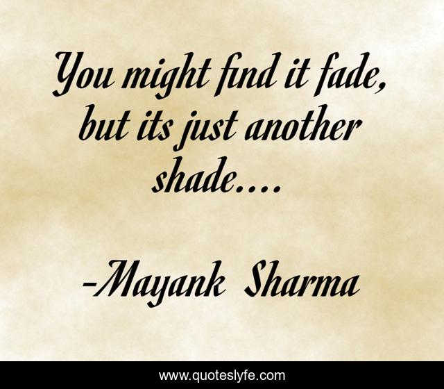 This page presents the quote "You might find it fade, but its just another shade....". Author of this quote is Mayank Sharma. This quote is about life-philosophy, life, life-and-living, life-lessons,.