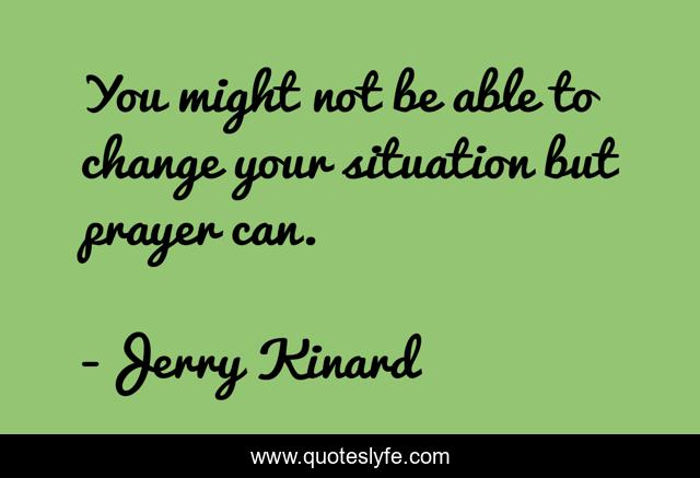 This page presents the quote "You might not be able to change your situation but prayer can.". Author of this quote is Jerry Kinard. .