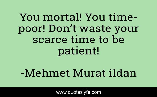 This page presents the quote "You mortal! You time-poor! Don’t waste your scarce time to be patient!". Author of this quote is Mehmet Murat ildan. .