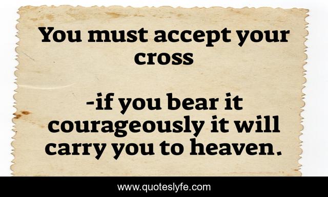 "if you bear it courageously it will carry you to heaven. Quotes." Quoteslyfe.com, 2025. Sun. 07 Dec. 2025. <https://www.quoteslyfe.com/quote/You-must-accept-your-cross-91432>.