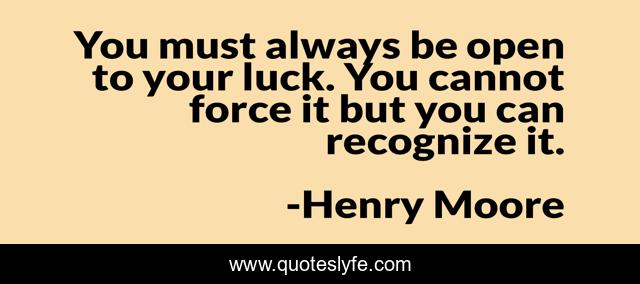 This page presents the quote "You must always be open to your luck. You cannot force it but you can recognize it.". Author of this quote is Henry Moore. This quote is about recognize, maximize,.