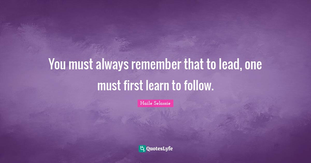 This page presents the quote "You must always remember that to lead, one must first learn to follow.". Author of this quote is Haile Selassie. This quote is about firsts, remember,.