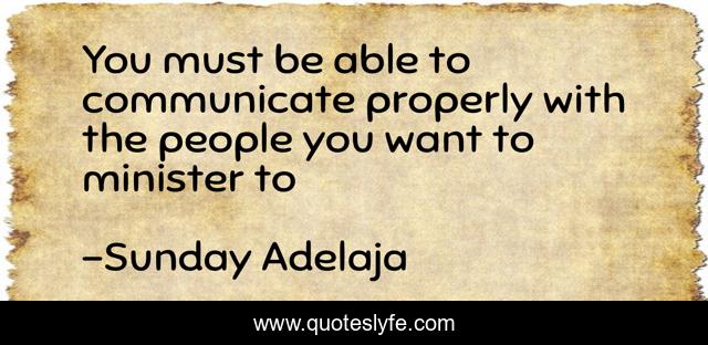This page presents the quote "You must be able to communicate properly with the people you want to minister to". Author of this quote is Sunday Adelaja. This quote is about ministration, life, blessing, finance, ministry, communication, work, communicate, job,.