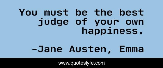 This page presents the quote "You must be the best judge of your own happiness.". Author of this quote is Jane Austen, Emma. .