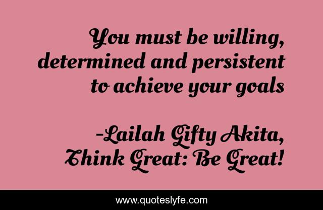 "Lailah Gifty Akita, Think Great: Be Great! Quotes." Quoteslyfe.com, 2025. Fri. 05 Dec. 2025. <https://www.quoteslyfe.com/quote/You-must-be-willing-determined-and-persistent-34641>.