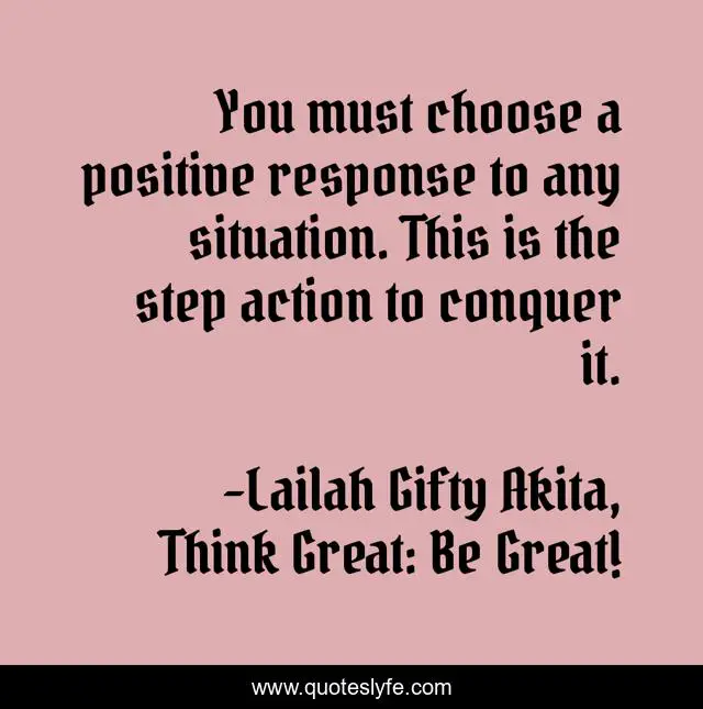 "Lailah Gifty Akita, Think Great: Be Great! Quotes." Quoteslyfe.com, 2025. Sat. 06 Dec. 2025. <https://www.quoteslyfe.com/quote/You-must-choose-a-positive-response-to-78497>.