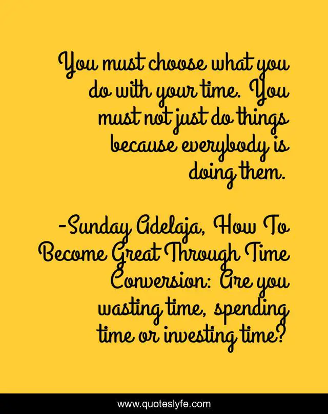 "Sunday Adelaja, How To Become Great Through Time Conversion: Are you wasting time, spending time or investing time? Quotes." Quoteslyfe.com, 2025. Sat. 06 Dec. 2025. <https://www.quoteslyfe.com/quote/You-must-choose-what-you-do-with-30786>.