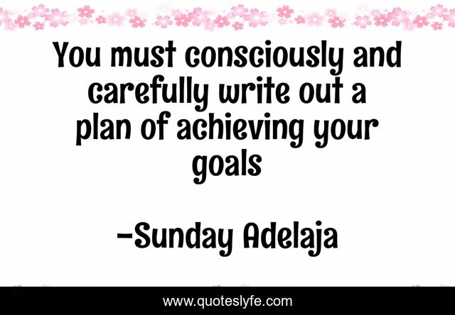 This page presents the quote "You must consciously and carefully write out a plan of achieving your goals". Author of this quote is Sunday Adelaja. This quote is about conscious, write, goals, careful, achievement, plan,.
