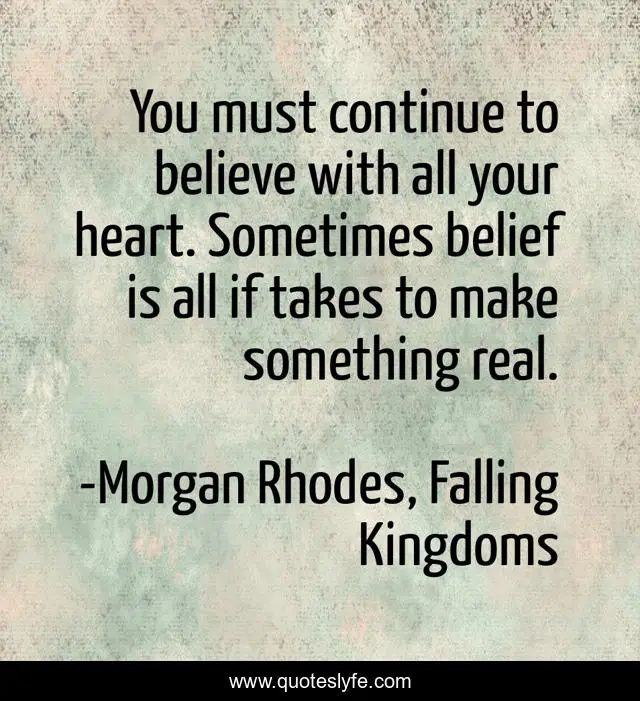 This page presents the quote "You must continue to believe with all your heart. Sometimes belief is all if takes to make something real.". Author of this quote is Morgan Rhodes, Falling Kingdoms. .