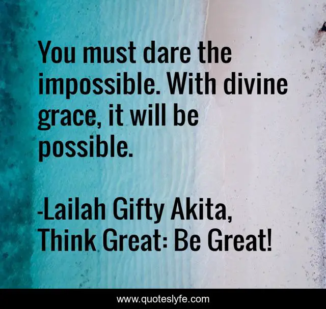 "Lailah Gifty Akita, Think Great: Be Great! Quotes." Quoteslyfe.com, 2025. Fri. 05 Dec. 2025. <https://www.quoteslyfe.com/quote/You-must-dare-the-impossible-With-divine-130357>.