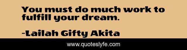 This page presents the quote "You must do much work to fulfill your dream.". Author of this quote is Lailah Gifty Akita. This quote is about enthusiasm, work, education, dream, inspirational,.