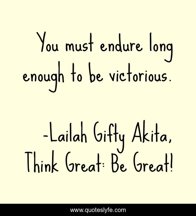 "Lailah Gifty Akita, Think Great: Be Great! Quotes." Quoteslyfe.com, 2025. Fri. 05 Dec. 2025. <https://www.quoteslyfe.com/quote/You-must-endure-long-enough-to-be-91779>.