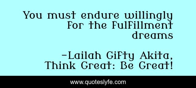 "Lailah Gifty Akita, Think Great: Be Great! Quotes." Quoteslyfe.com, 2025. Fri. 05 Dec. 2025. <https://www.quoteslyfe.com/quote/You-must-endure-willingly-for-the-fulfillment-34530>.