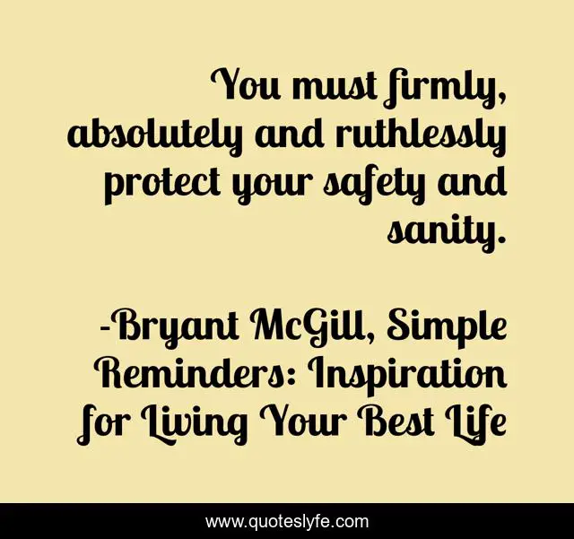 This page presents the quote "You must firmly, absolutely and ruthlessly protect your safety and sanity.". Author of this quote is Bryant McGill, Simple Reminders: Inspiration for Living Your Best Life. This quote is about ruthlessness, wisdom, sanity, protection, teaching, absolution,.