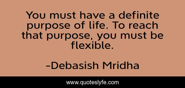This page presents the quote "You must have a definite purpose of life. To reach that purpose, you must be flexible.". Author of this quote is Debasish Mridha. This quote is about to-reach-that-purpose, philosophy, debasish-mridha, quotes, debasish-mridha-md, inspirational, enthusiasm, you-must-be-flexible, purpose-of-life,.