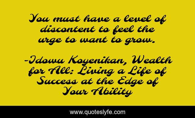 "Idowu Koyenikan, Wealth for All: Living a Life of Success at the Edge of Your Ability Quotes." Quoteslyfe.com, 2025. Fri. 05 Dec. 2025. <https://www.quoteslyfe.com/quote/You-must-have-a-level-of-discontent-77618>.