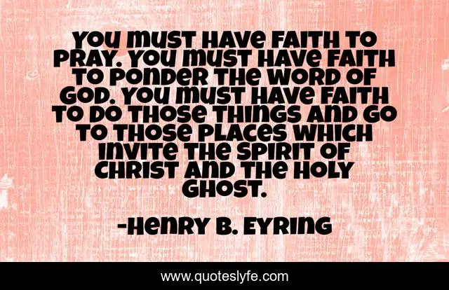 This page presents the quote "You must have faith to pray. You must have faith to ponder the word of God. You must have faith to do those things and go to those places which invite the Spirit of Christ and the Holy Ghost.". Author of this quote is Henry B. Eyring. This quote is about ghost, god,.