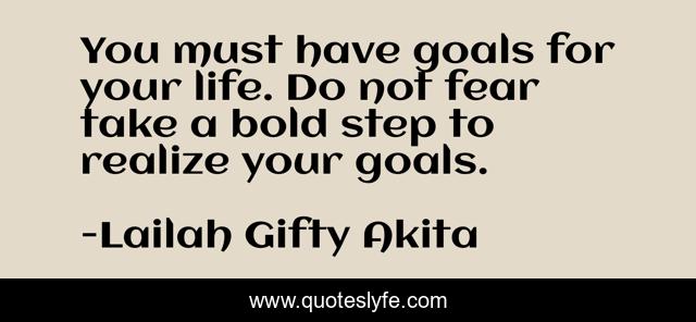 This page presents the quote "You must have goals for your life. Do not fear take a bold step to realize your goals.". Author of this quote is Lailah Gifty Akita. This quote is about achieving-excellence, goals-in-life, achieving-mastery, achieve-your-dreams, goals-priorities, goals, achievement-and-attitude, achieving-success, goals-and-plans,.
