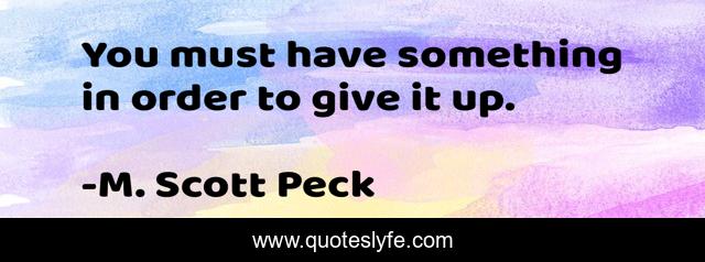 This page presents the quote "You must have something in order to give it up.". Author of this quote is M. Scott Peck. This quote is about self-growth, psychology,.