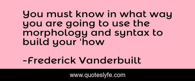 This page presents the quote "You must know in what way you are going to use the morphology and syntax to build your 'how". Author of this quote is Frederick Vanderbuilt. This quote is about clever, surviving, winner, reality, english-language, overcome, inspirational, enthusiasm, smart,.