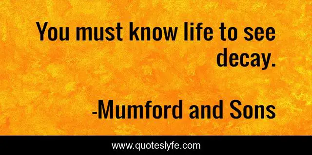 This page presents the quote "You must know life to see decay.". Author of this quote is Mumford and Sons. This quote is about after-the-storm, lyrics, mumford-and-sons,.