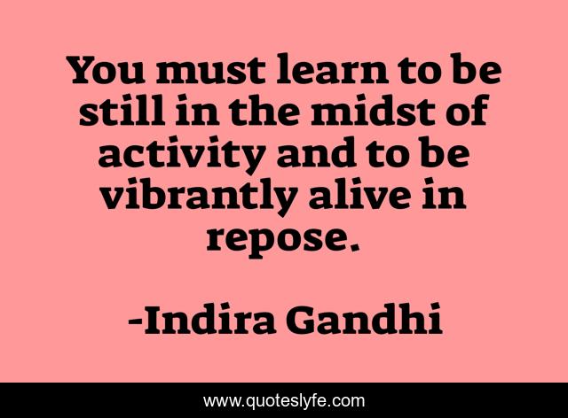 This page presents the quote "You must learn to be still in the midst of activity and to be vibrantly alive in repose.". Author of this quote is Indira Gandhi. This quote is about control, self,.