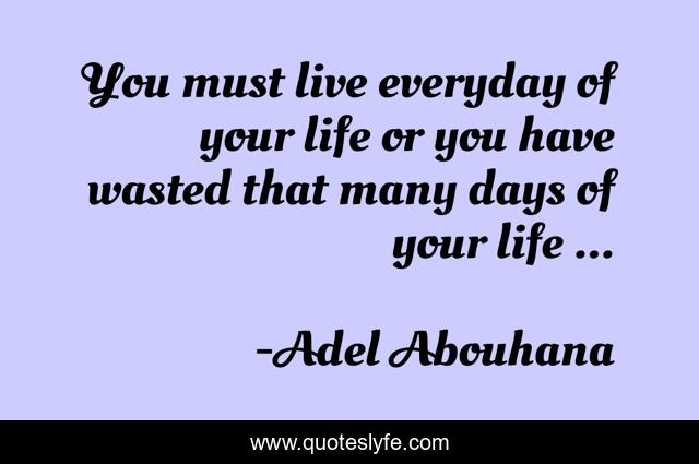 This page presents the quote "You must live everyday of your life or you have wasted that many days of your life ...". Author of this quote is Adel Abouhana. This quote is about life, happy-life, happiness-advice, life-lessons, life-philosophy, happiness,.