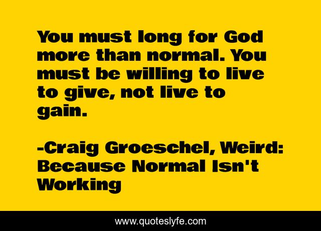 This page presents the quote "You must long for God more than normal. You must be willing to live to give, not live to gain.". Author of this quote is Craig Groeschel, Weird: Because Normal Isn't Working. This quote is about be, for, normal, god, give, long, to, live, willing,.