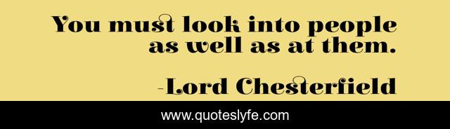 This page presents the quote "You must look into people as well as at them.". Author of this quote is Lord Chesterfield. .