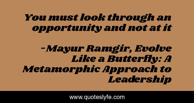 This page presents the quote "You must look through an opportunity and not at it". Author of this quote is Mayur Ramgir, Evolve Like a Butterfly: A Metamorphic Approach to Leadership. .