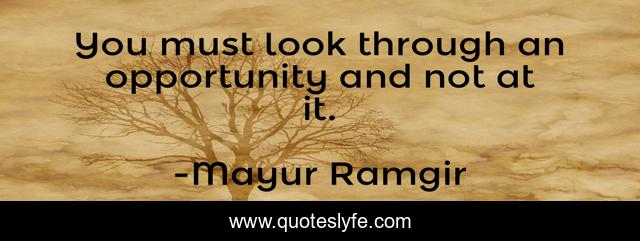 This page presents the quote "You must look through an opportunity and not at it.". Author of this quote is Mayur Ramgir. This quote is about evolve-like-a-butterfly, leadership,.