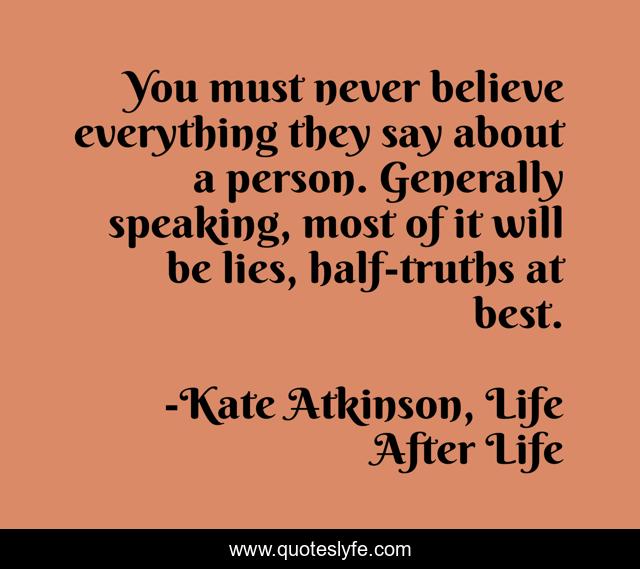 "Kate Atkinson, Life After Life Quotes." Quoteslyfe.com, 2025. Sat. 06 Dec. 2025. <https://www.quoteslyfe.com/quote/You-must-never-believe-everything-they-say-167305>.