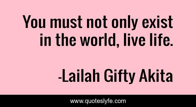 This page presents the quote "You must not only exist in the world, live life.". Author of this quote is Lailah Gifty Akita. This quote is about life, live-your-life, life-experience, life-lesson, live-life-so-well, life-philosophy-inspirational, live, lives, life-lessons,.
