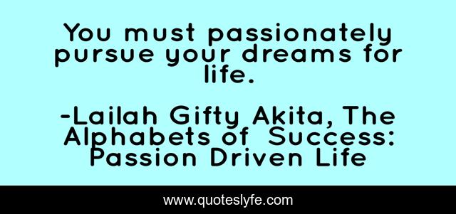 "Lailah Gifty Akita, The Alphabets of Success: Passion Driven Life Quotes." Quoteslyfe.com, 2025. Tue. 09 Dec. 2025. <https://www.quoteslyfe.com/quote/You-must-passionately-pursue-your-dreams-for-109605>.