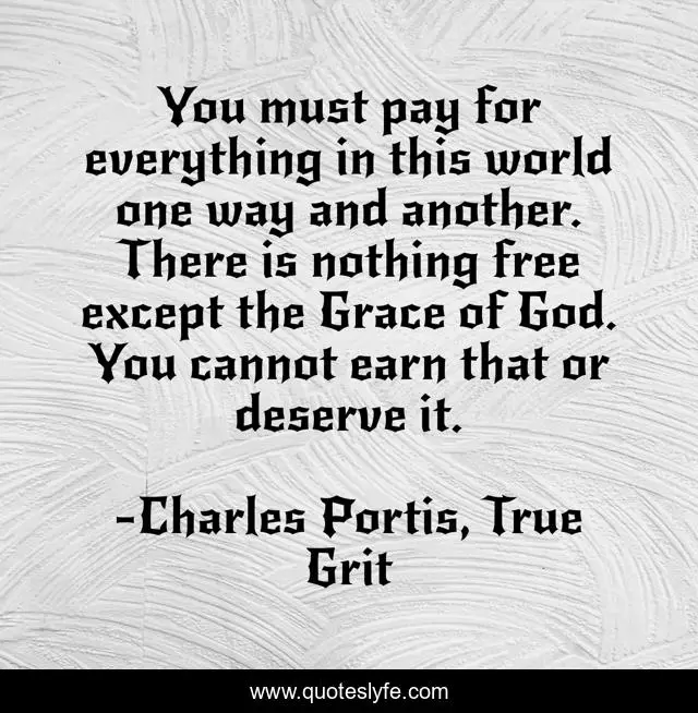 This page presents the quote "You must pay for everything in this world one way and another. There is nothing free except the Grace of God. You cannot earn that or deserve it.". Author of this quote is Charles Portis, True Grit. .