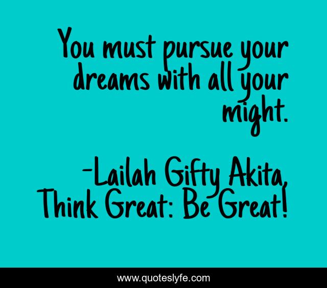 "Lailah Gifty Akita, Think Great: Be Great! Quotes." Quoteslyfe.com, 2025. Sat. 06 Dec. 2025. <https://www.quoteslyfe.com/quote/You-must-pursue-your-dreams-with-all-92788>.