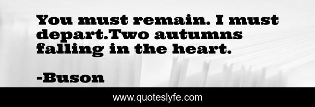 This page presents the quote "You must remain. I must depart.Two autumns falling in the heart.". Author of this quote is Buson. This quote is about autumn, grief, haiku, poetry, loss,.